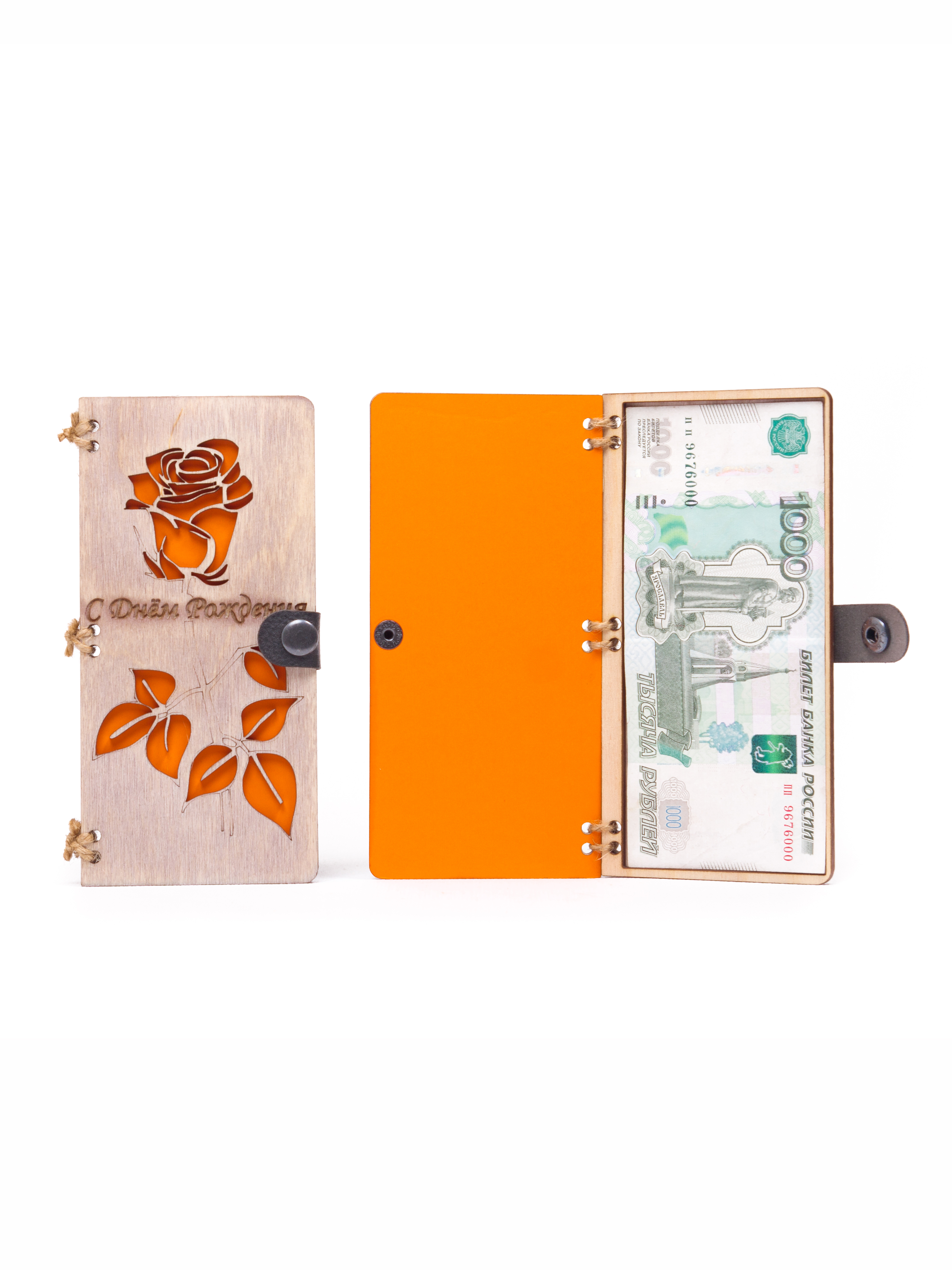 Конверт деревянный " С днём рождения (Роза) оранжевая