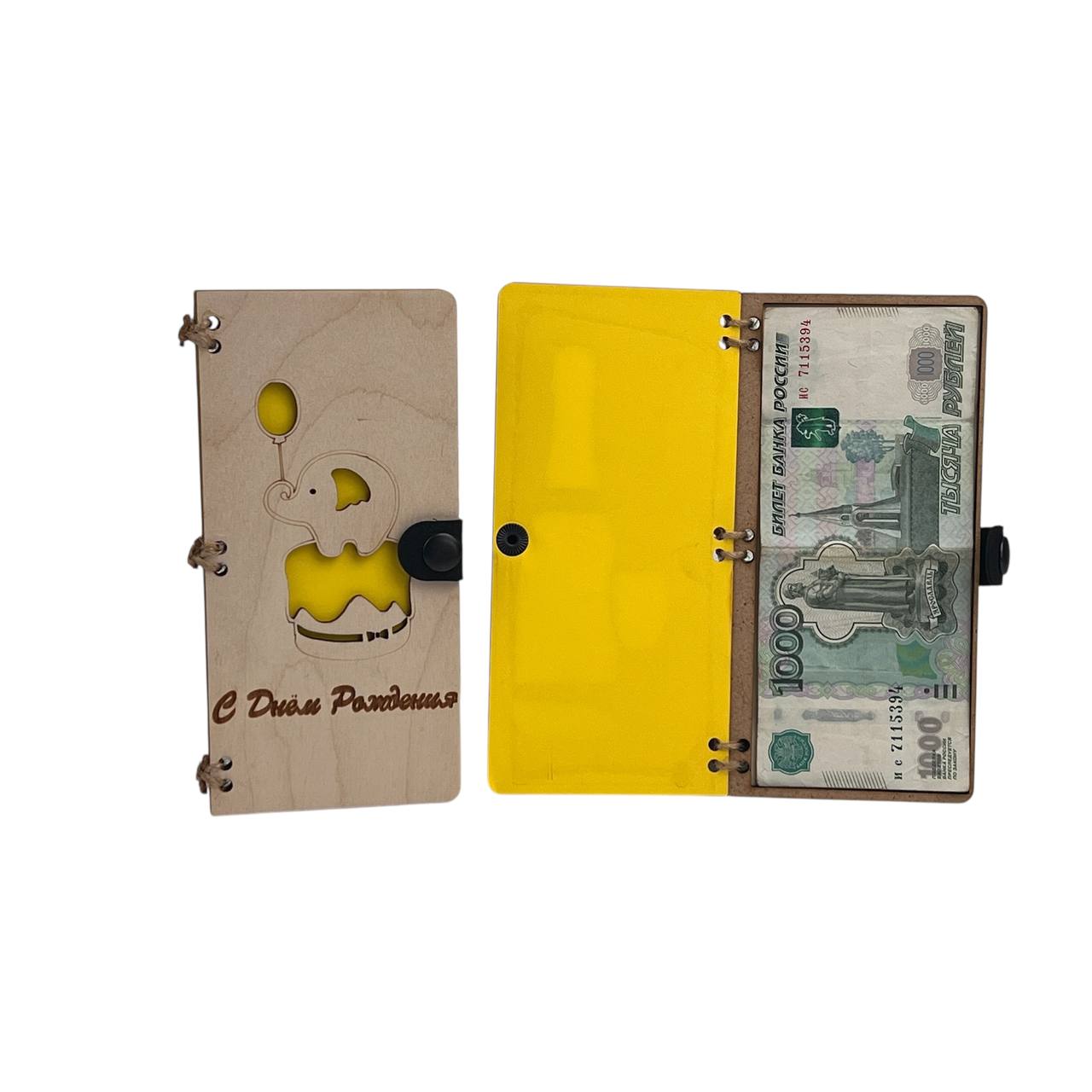 Конверт деревянный " С днём рождения ( Слоник) " жёлтый