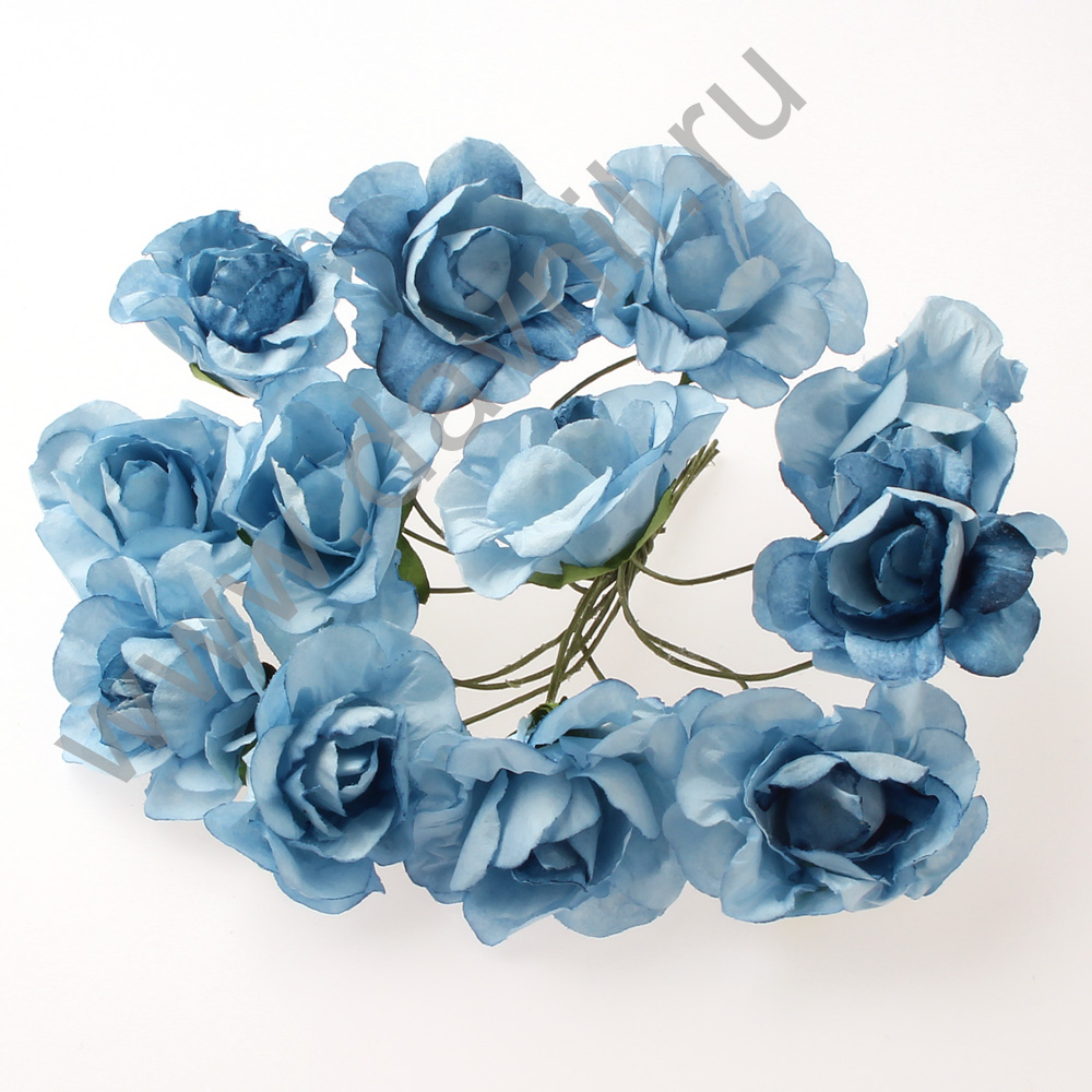 Бутоньерка "Открытая роза" 12 шт. голубая