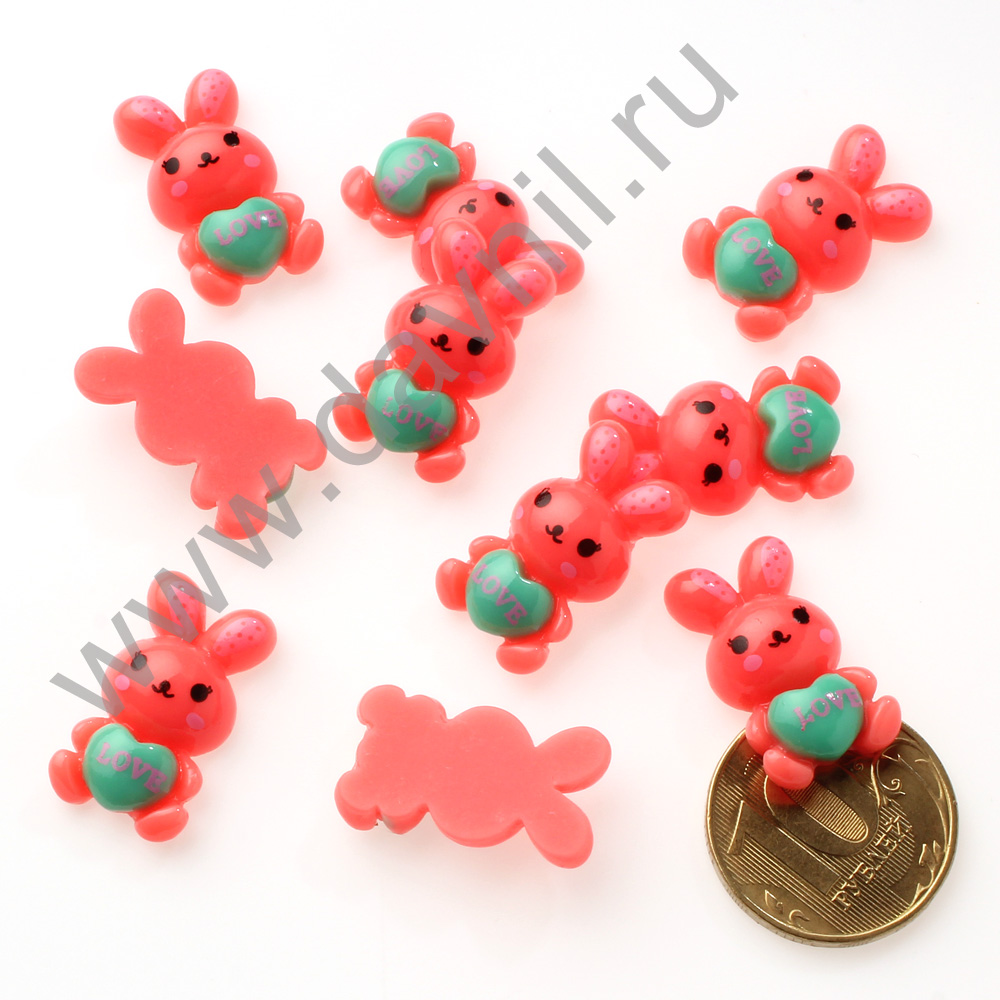 Кабошон "Зайчик с сердечком" 23*13 мм 500 шт коралловый