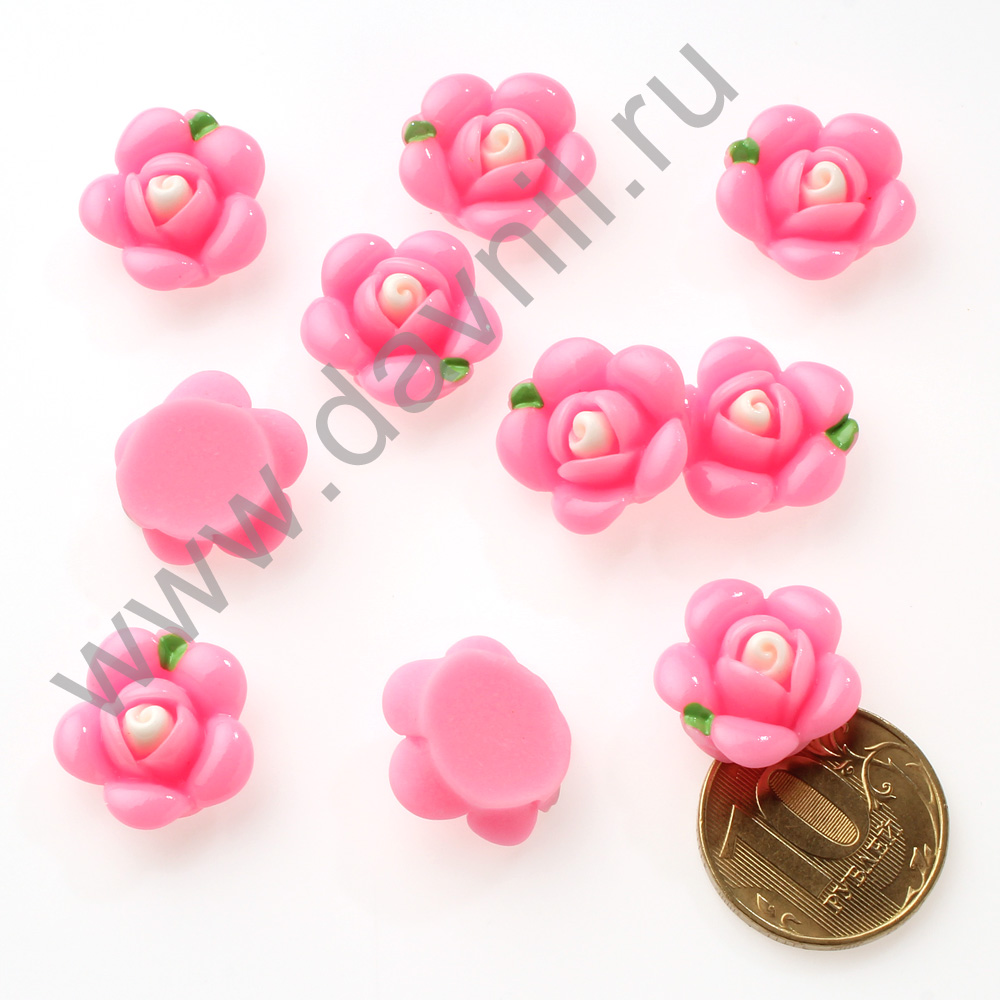 Кабошон "Роза" 18 мм без отверстия 20 шт розовый