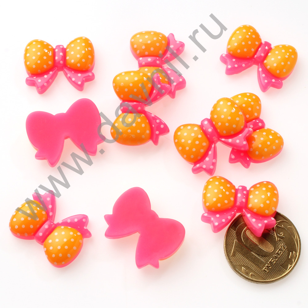 Кабошон "Бантик" 17*22 мм 20 шт фуксия с желтым