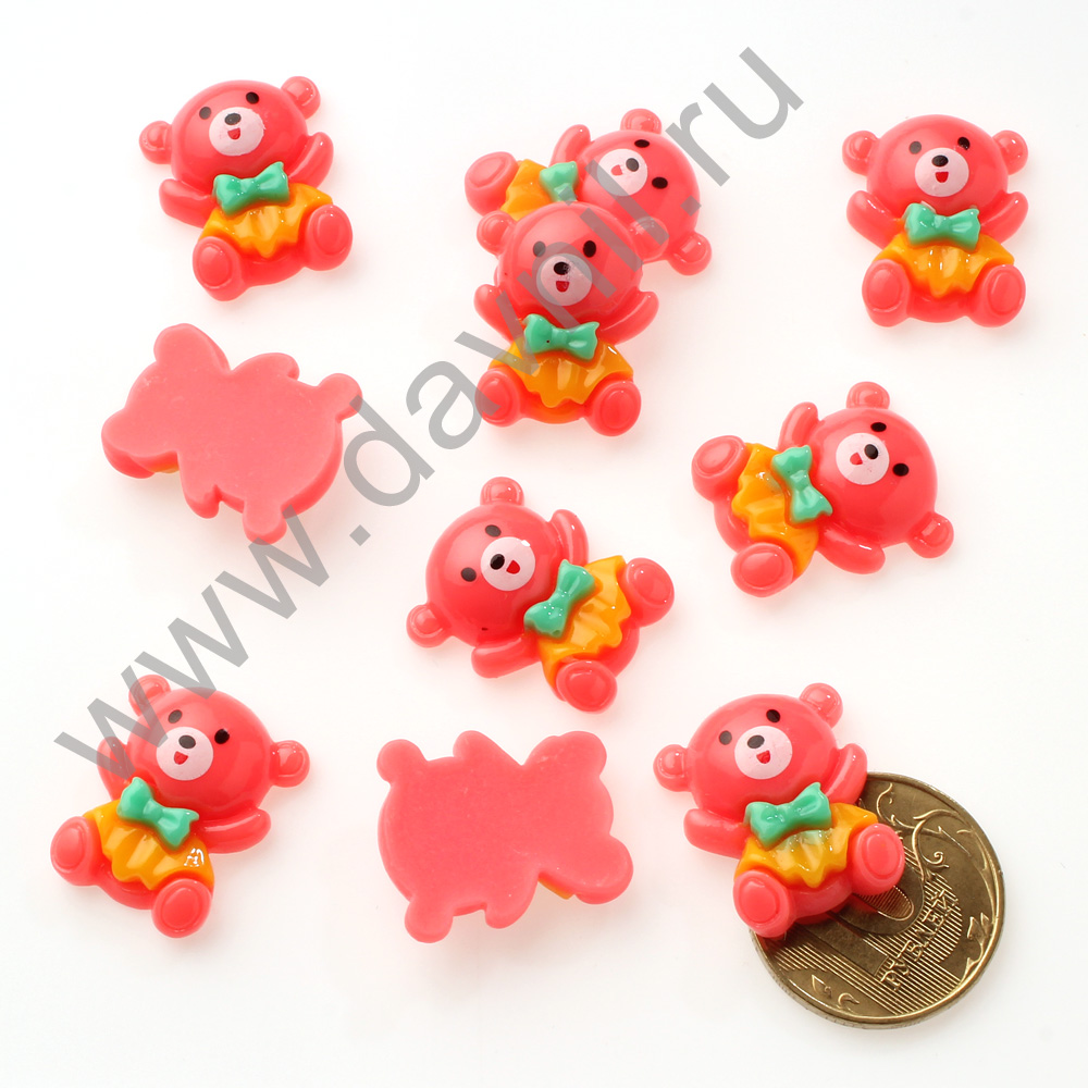 Кабошон "Мишка" 23*15 мм 20 шт коралловый