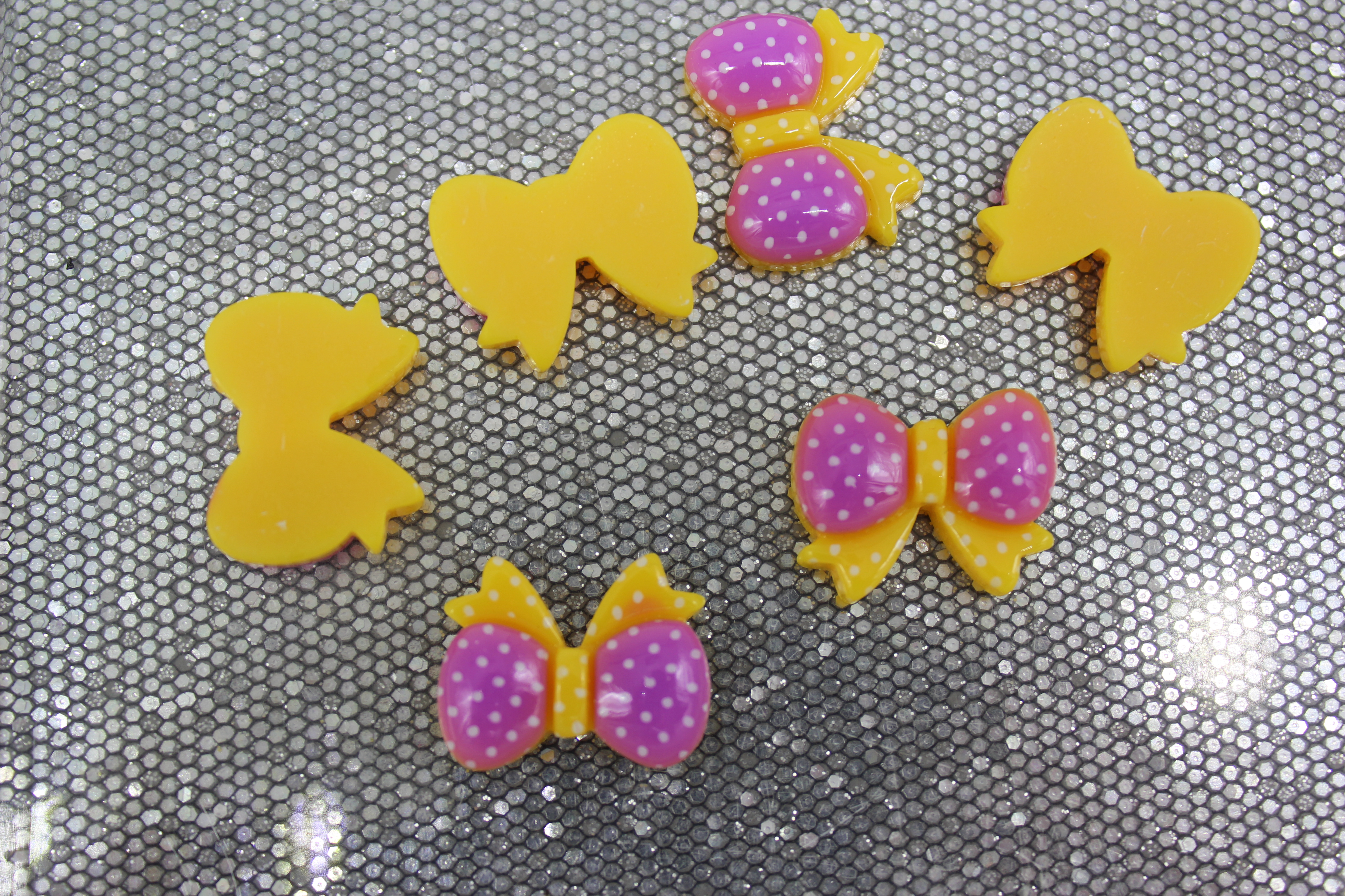 Кабошон "Бантик" 17*22 мм 20 шт желтый с сиреневым