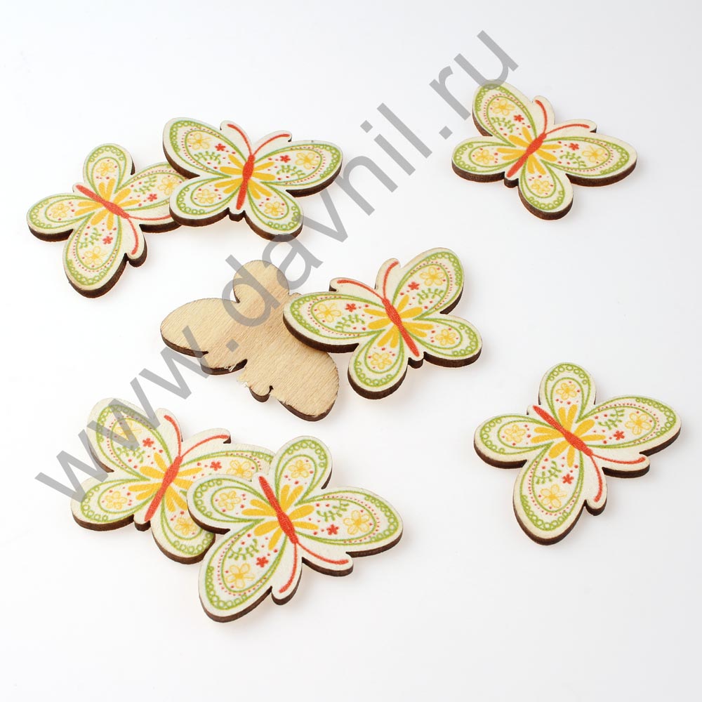 Кабошон "Бабочка" деревянный 20 шт салатовый