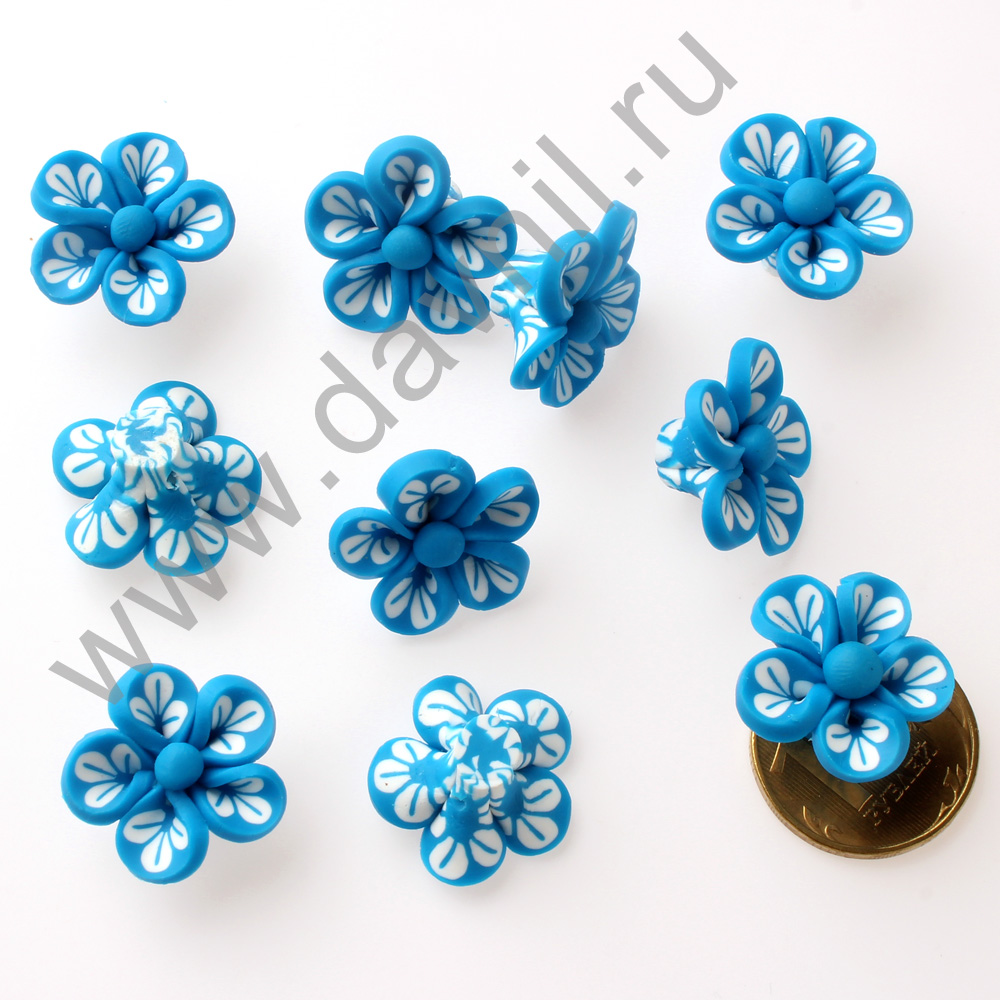 Кабошон "Ромашка" из каучука 2 см синий 10 шт