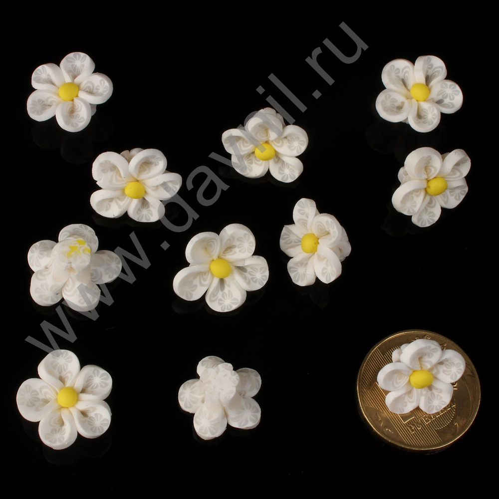 Кабошон "Ромашка" из каучука 2 см белый 10 шт