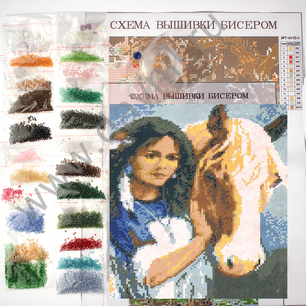 Набор для вышивания бисером 16*20 см. Девушка у лошади