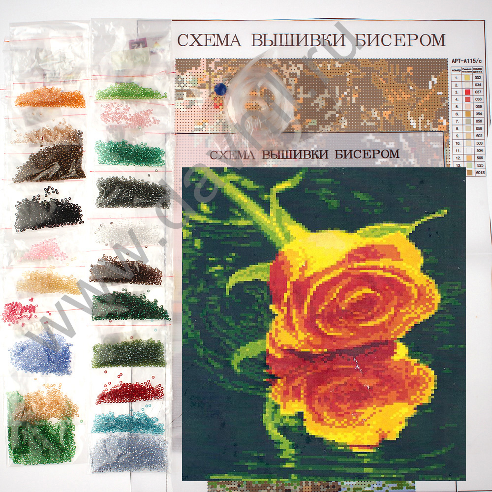 Набор для вышивания бисером 21*30 см. Отражение розы в воде