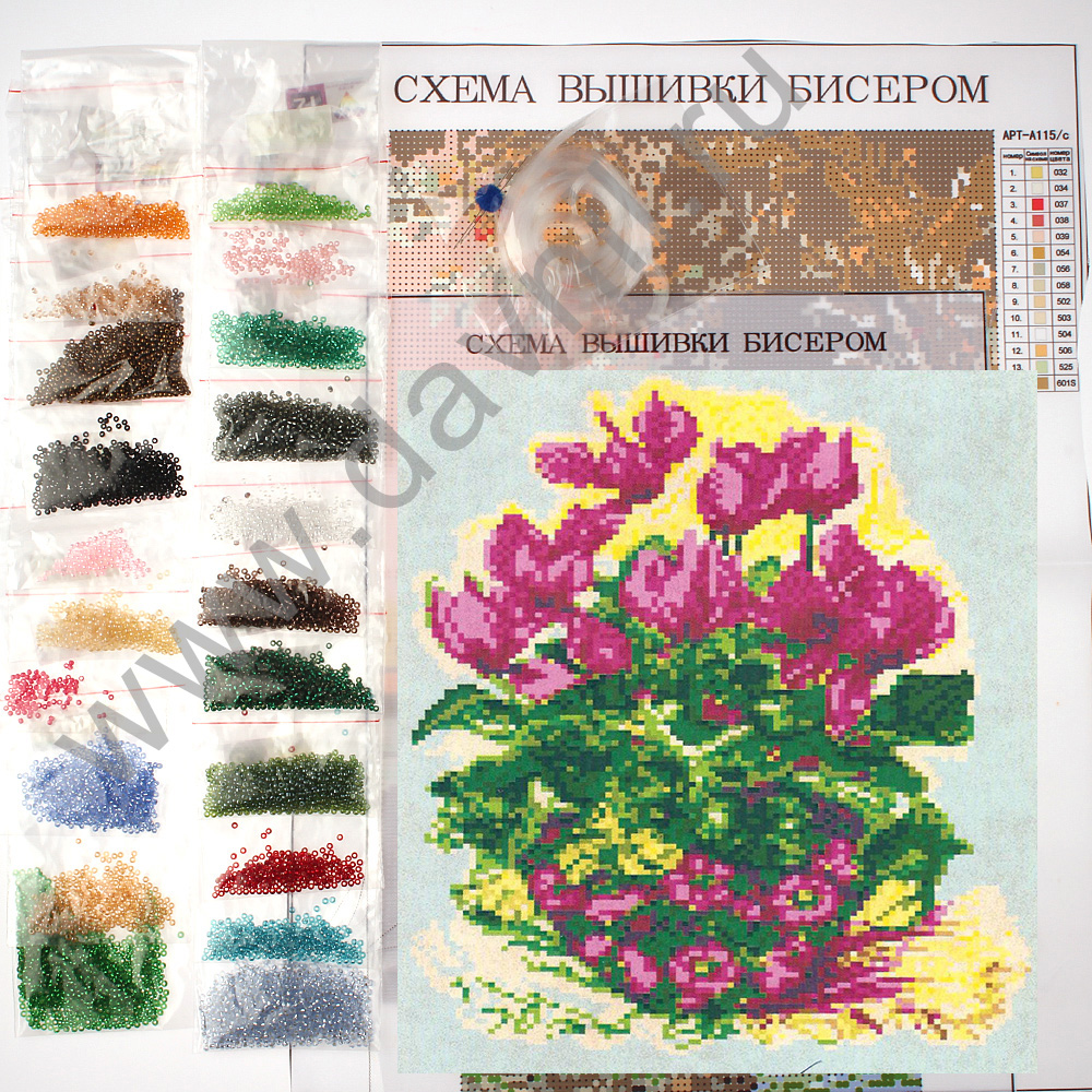 Набор для вышивания бисером 16*20 см. Розовые фиалки