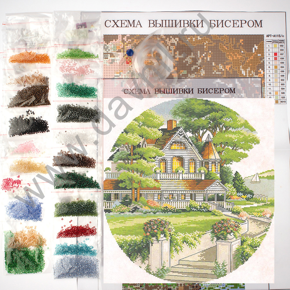 Набор для вышивания бисером 16*20 см. Дом у реки